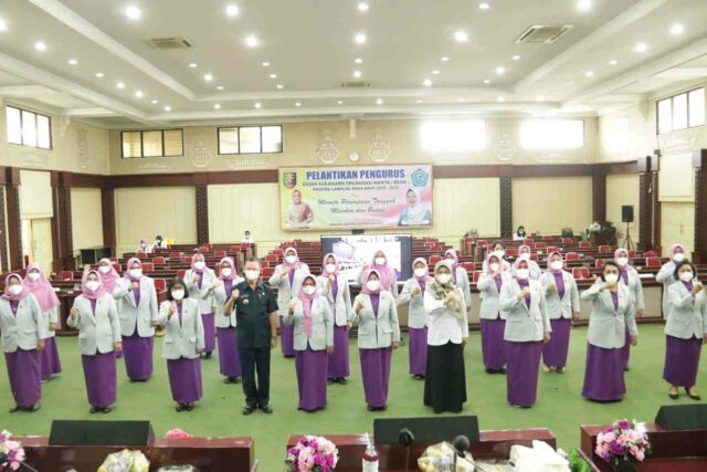 Onlinekoe.com, Bandar Lampung — Sekretaris Daerah Provinsi Lampung, Fahrizal Darminto, mewakili Gubernur Lampung melantik Kepengurusan Badan Kerjasama Organisasi Wanita (BKOW) Provinsi Lampung Masa Bakti 2020-2025, di Gedung Pusiban Komplek Perkantoran Gubernur, Rabu (24/02).