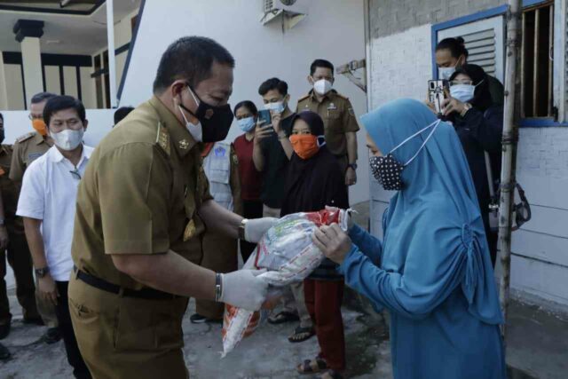 Secara simbolis, Gubernur Arinal Djunaidi didampingi Sekretaris Daerah Provinsi Lampung, Fahrizal Darminto, Kadis Sosial, Kadis Kominfotik, Kepala Bulog Divre Lampung memberikan bantuan beras kepada Keluarga Penerima Manfaat (KPM) di Kelurahan Pengajaran Bandar Lampung.