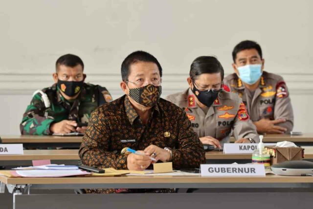Sementara itu, Gubernur Lampung Arinal Djunaidi, usai mengikuti rakor tersebut, langsung menggelar rapat koordinasi bersama jajaran Forkopimda untuk segera mengambil langkah-langkah strategis pencegahan penyebaran Covid-19 menjelang Hari Raya Idul Fitri 1442 H, tahun 2021 di Provinsi Lampung. (Dinas Kominfotik Provinsi Lampung)