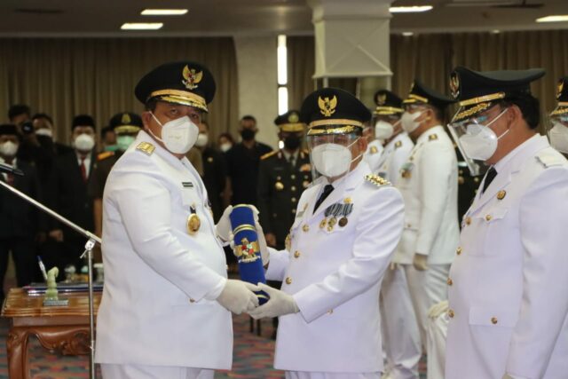 Onlinekoe.com, BANDARLAMPUNG—Gubernur Lampung Arinal Djunaidi atas nama Presiden Republik Indonesia melantik dan mengambil Sumpah Jabatan secara langsung 7 Kepala Daerah (Kada) hasil Pemilihan Kepala Daerah (Pilkada) 2020, di Balai Keratun, Jumat (26/02)
