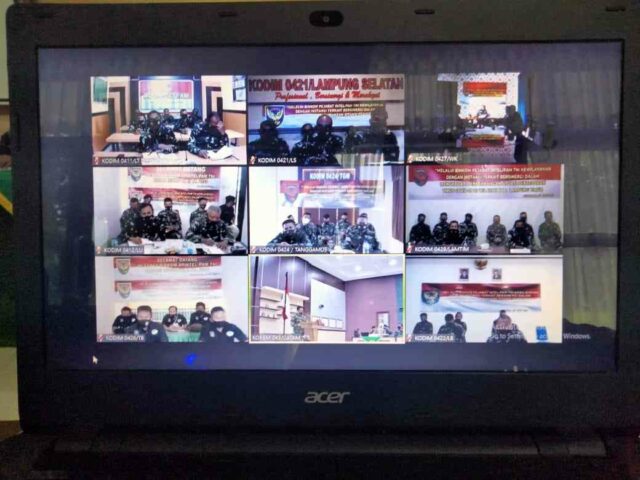 Onlinekoe.com — Vicon (Video Conference) pada Giat Binkom Pejabat Intel/Pam TNI kewilayahan dengan instansi terkait sintel Dam II/Swj TW II Ta 2021 Diwilayah Korem 043/Gatam Prov Lampung