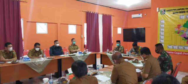 Bupati Lamtim Dawam Rahardjo bersama wakil Bupati Lamtim H Azwar Hadi SE M.Si melakukan rapat evaluasi percepatan penanganan dan pencegahan virus Corona (Covid-19) di ruang rapat kantor Bupati lamtim. Rapat ini digelar, untuk melihat sejauh mana perkembangan penanganan Covid-19 di Kabupaten Lamtim. Dalam program 100 hari kerja penanggulangan Covid 19 menjadi yang utama.