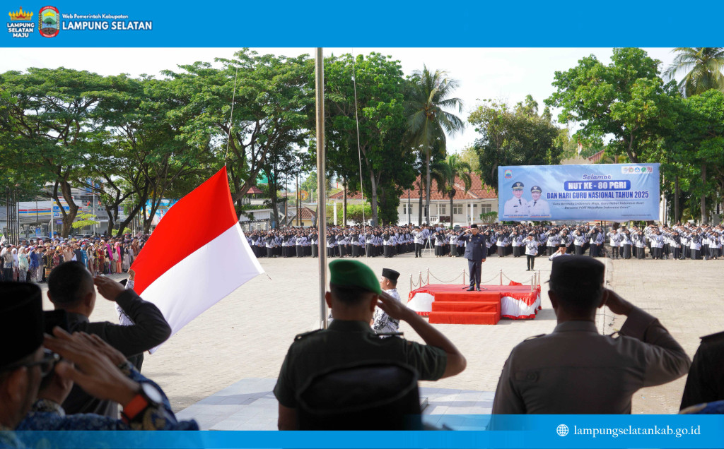 ONLINEKOE.COM LAMSEL, Kalianda – Peringatan Hari Ulang Tahun (HUT) ke-80 Persatuan Guru Republik Indonesia (PGRI) dan Hari Guru Nasional (HGN) 2025 di Kabupaten Lampung Selatan berlangsung khidmat dan penuh makna di Lapangan Korpri Kalianda, kompleks perkantoran Pemkab Lampung Selatan, Selasa (25/11/2025).