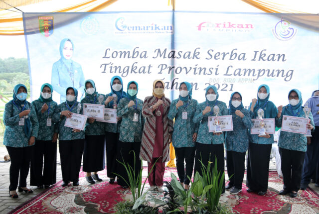Onlinekoe.com, LAMPUNG SELATAN —– Ketua Tim Penggerak PKK Provinsi Lampung Ibu Riana Sari Arinal membuka Lomba Masak Serba Ikan Tingkat Provinsi Lampung, yang dilaksanakan di PKK Agro Park, Sabah Balau, Lampung Selatan, Sabtu (3/4/2021).