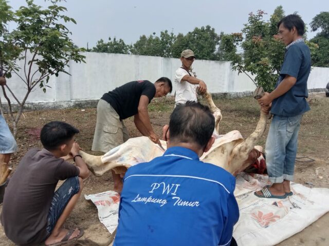 Onlinekoe.com, LAMPUNG TIMUR – Persatuan Wartawan Indonesia (PWI) Kabupaten Lampung Timur (Lamtim) memperingati hari raya Idul Adha 1442 H tahun 2021 dengan cara sederhana, mengingat perayaan idul adha di tengah situasi Pandemi Covid 19, Selasa (20/7).