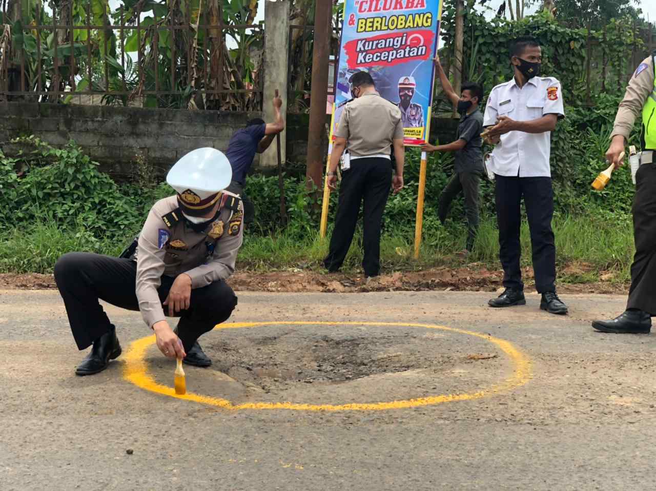 ” Selain itu juga,10 titik lokasi kita lakukan pemasangan tanda baik jalan tersebut dalam keadaan rusak maupun dalam keadaan tikungan tajam,10 titik pemasangan tersebut juga akhir-akhir ini sering memakan korban kecelakaan,” ujar AKP Betty Purwanti SIK ,Rabu (27/1/2021).