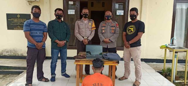 “Kamis malam petugas kami bersama dengan warga berhasil menangkap seorang pemuda pelaku curat di Kantor Kecamatan Penawar Aji, pemuda tersebut ditangkap sesaat setelah mencuri sebuah laptop milik Kantor Kecamatan Penawar Aji,” ujar Kapolsek Gedung Aji Ipda Arbiyanto, SH, mewakili Kapolres Tulang Bawang AKBP Andy Siswantoro, SIK, Sabtu (20/02/2021).