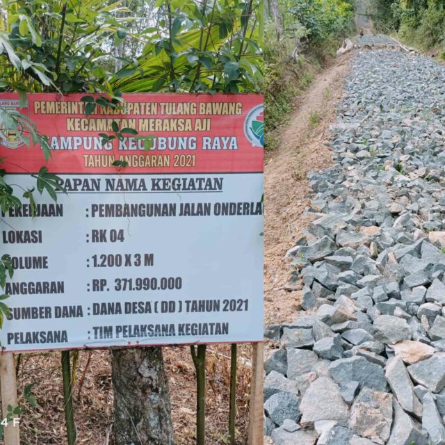 AL (56), meminta Pemerintah Kampung Kecubung Raya. Untuk segera membongkar ulang dan memperbaiki cara pengerjaan jalan onderlagh RK 4 Kampung Kecubung raya yang berdiameter panjangnya 1200 meter dan lebar 3 meter dengan menghabiskan dana desa senilai Rp372.000.000.