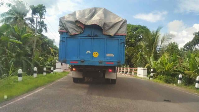 Diduga faktor penyebab kerusakan jalan diperkirakan kendaraan yang melintasi jalan milik Negara ini melebih Tonase (Over Load). Persentase kendaraan yang melintasi jalan tersebut adalah kendaraan Muatan Sawit, Getah Karet, Minyak, dan Batu Bara.