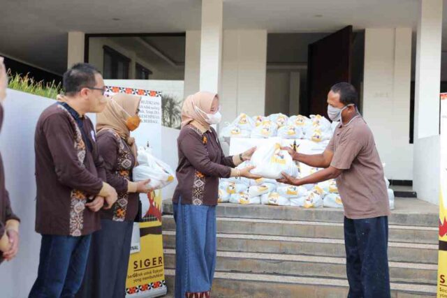 Kegiatan yang bertajuk Siger (Saatnya Ikut berGErak untuk Rakyat) ini berisikan paket sembako berupa bahan-bahan pokok seperti beras, gula, minyak, sayuran dan bahan lainnya.