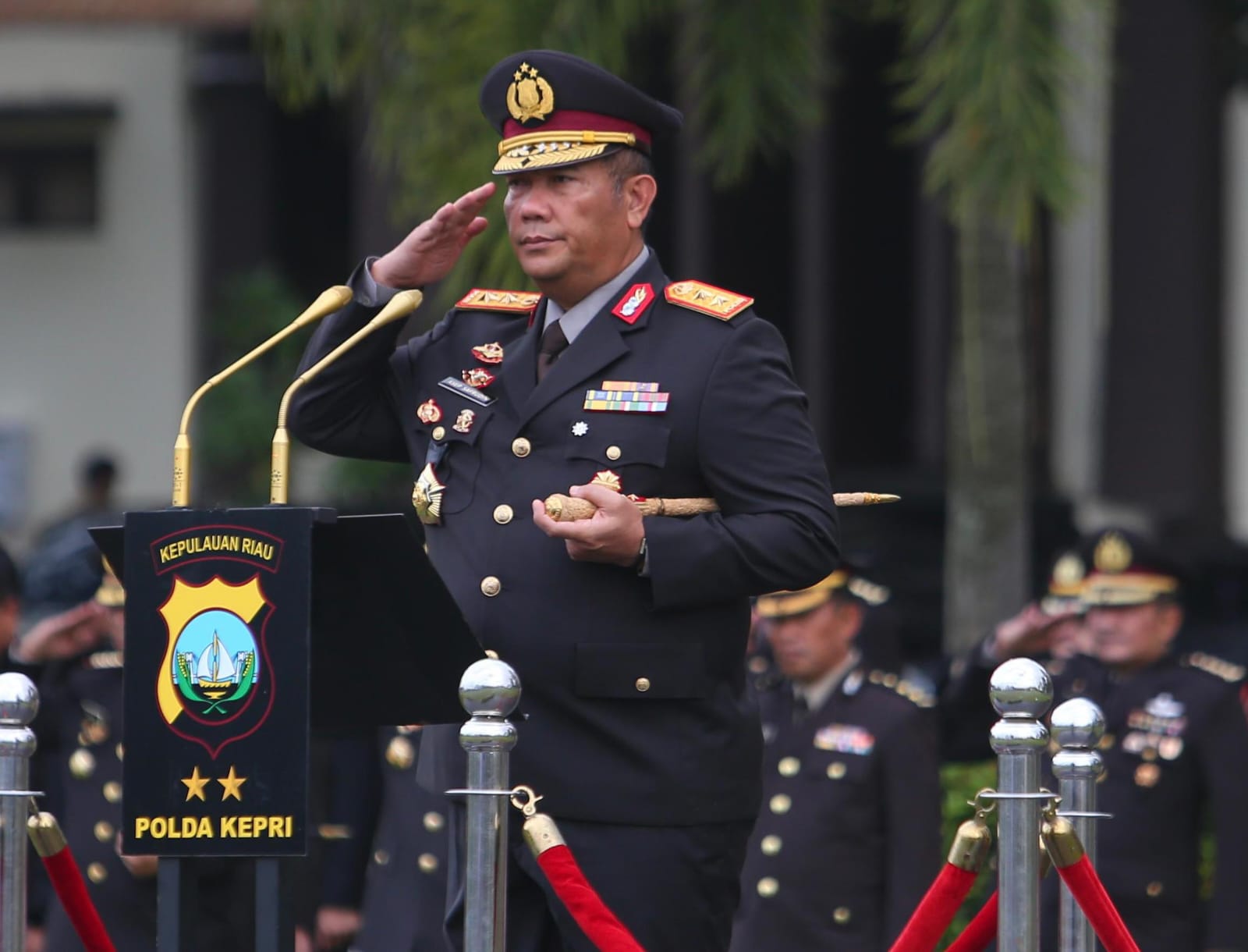 Upacara dipimpin langsung oleh Kapolda Kepri Irjen Pol Asep Safrudin, S.I.K., M.H., dan dihadiri Wakapolda Kepri Brigjen Pol Dr. Anom Wibowo, S.I.K., M.Si., Irwasda Polda Kepri, para Pejabat Utama Polda Kepri, serta diikuti oleh personel perwira dan bintara Polda Kepri.