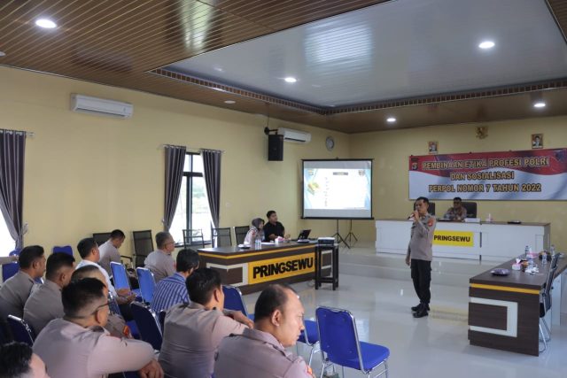 Pringsewu – Bidang Profesi dan Pengamanan (Propam) Polda Lampung mengingatkan seluruh anggota Polri di Polres Pringsewu untuk senantiasa menjaga etika dan profesionalisme dalam menjalankan tugas. Anggota diminta untuk tidak terlibat dalam pelanggaran disiplin, kode etik, maupun tindak pidana yang dapat mencoreng citra kepolisian di mata masyarakat.