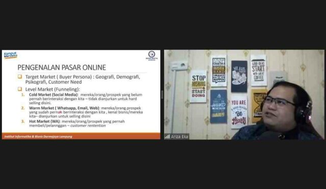 Dalam kegiatan yang dimoderatori Anik Irawati, S.E., M.Sc., Ketua Prodi Bisnis Digital ini menekankan agar mahasiswa membantu pemulihan UMKM Lampung. “Apa yang dapat kalian lakukan dalam Bisnis Digital. Fokus Anda adalah membantu UMKM dan UKM untuk pemasaran digital,” ungkapnya.