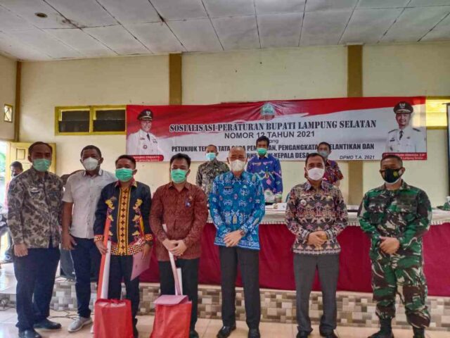 Onlinekoe.com – Sosialisasi Peraturan Bupati Lamsel Nomor 12 Th 2021 tentang petunjuk teknis tata cara Pemilihan, Pengangkatan/Pelantikan dan Pemberhentian Kepala Desa oleh PMD Kabupaten Lampung Selatan 2(Dua) Bakhaune dan Kec Raja Basa , Sosialisasi diLaksanakan di Aula Kecamatan Bakauheni Lampung Selatan, Kamis (03/06/21)