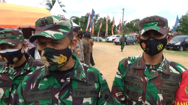 Onlinekoe, Banjarnegara – Kasrem 071/Wijaya Kusuma Kasrem 071/WK Letkol Kav Kristiyanto S.sos mewakili Danrem 071/Wijaya Kusuma Kolonel Inf Dwi Lagan Safrudin, S.I.P menyaksikan Penandatanganan dan Penyerahan Naskah Program Tentara Manunggal Membangun Desa (TMMD) Ke 111 TA 2021. Kodim 0704/Banjarnegara dengan Pemkab Banjarnegara di Gedung olahraga Kebutuhjurang. Rabu (14/7/21).