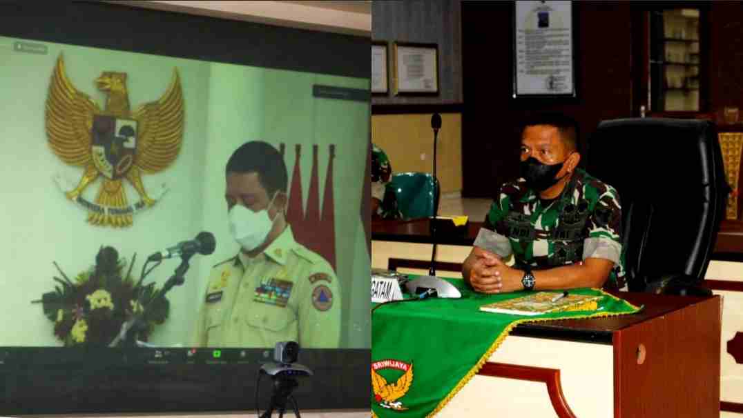 Onlinekoe.com | Bandar Lampung – Bertempat di Aula Ahmad Yani Makorem 043/Gatam jalan Tengku Umar No 85 kelurahan Penengahan Kecamatan Kedaton Kota Bandar Lampung, Kepala Staf Korem 043/Gatam Kolonel Inf Dendy Suryadi.S.H.,M.H mewakili Danrem 043/ Gatam mengikuti Vidio Teleconverence (Vicon) Penanggulangan Bencana Alam Nasional tahun 2022 dengan Presiden Republik Indonesia Ir Joko Widodo, (23/2/22).