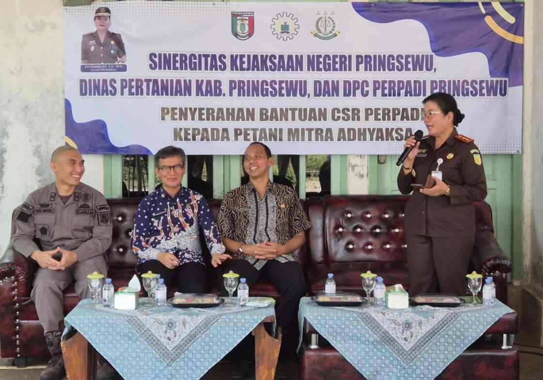 Pringsewu – Kejaksaan Negeri Pringsewu bersama Dinas Pertanian Pringsewu memfasilitasi kegiatan penyerahan bantuan Corporate Social Responsibility (CSR) dari Persatuan Pengusaha Penggilingan Padi (Perpadi) Kabupaten Pringsewu kepada kelompok tani penerima manfaat dalam Program Petani Mitra Adhyaksa di Pekon Tanjung Anom, Kecamatan Ambarawa, kamis (06/11/2025).