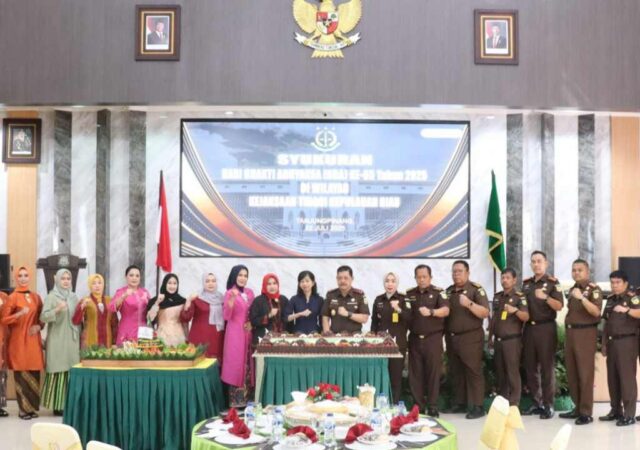 Tanjungpinang – Kejaksaan Tinggi (Kejati) Kepulauan Riau menggelar acara syukuran dalam rangka memperingati Hari Bhakti Adhyaksa (HBA) ke-65 pada Selasa (22/7/2025) di Aula Sasana Baharuddin Lopa, Tanjungpinang. Peringatan ini berlangsung secara sederhana namun sarat makna dan penuh khidmat, mencerminkan kesederhanaan dan semangat kebersamaan seluruh insan Adhyaksa di Bumi Segantang Lada.