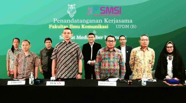 Penandatanganan kerjasama UKW SMSI-UPDM dilakukan oleh Ketua Umum SMSI Firdaus dan Dekan Fakultas Ilmu Komunikasi UPDM Dr Yoga Prasetya Santoso, MSi dengan disaksikan oleh Ketua Jurusan Komunikasi UPDM Dr Wahyudi Pratama, Ketua Program Studi Jurnalistik Nasrullah, MSi, dan Kapala Bagian Umum Habib Umar.