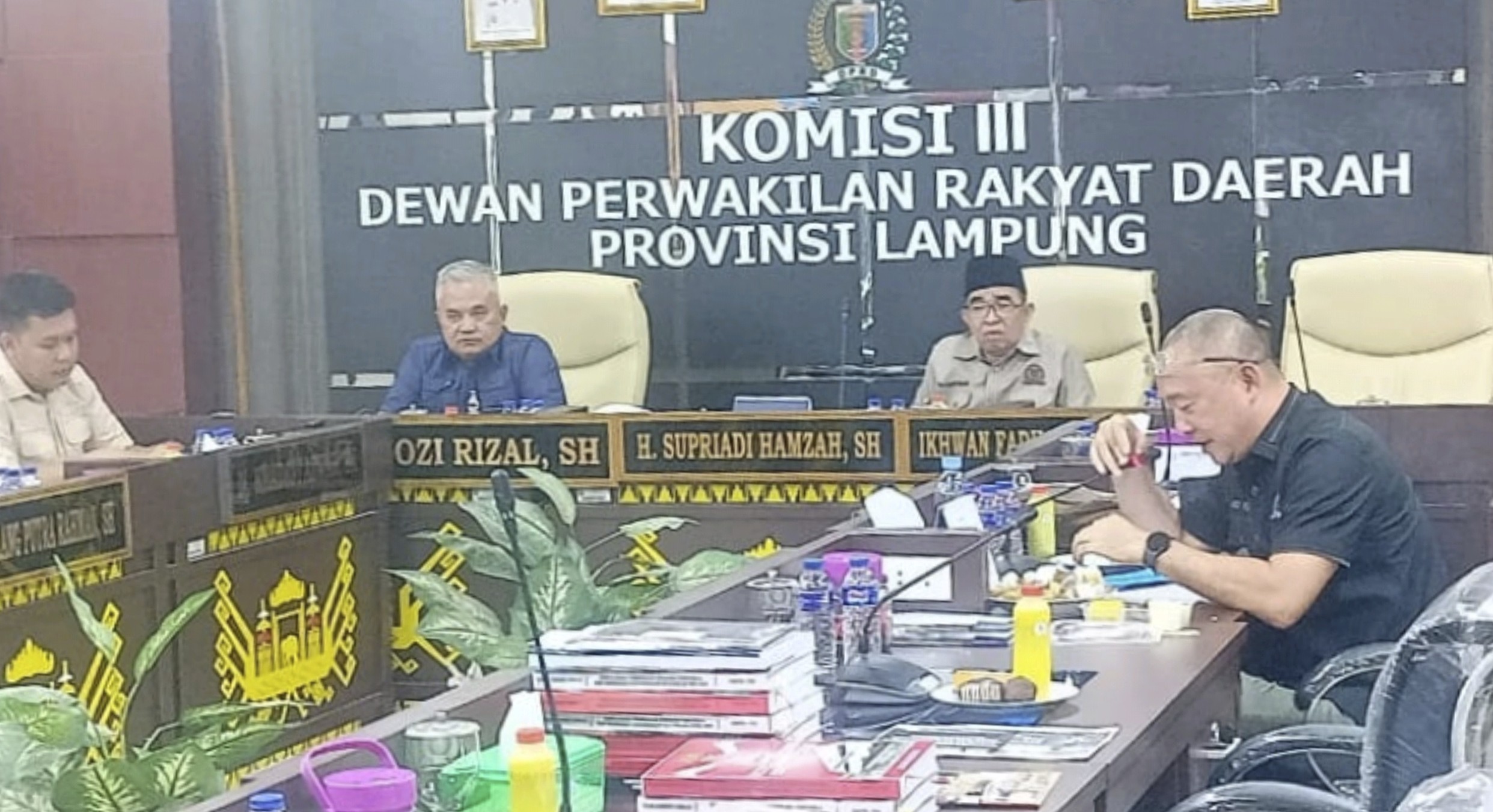 Rapat dipimpin oleh Ketua Komisi III DPRD Provinsi Lampung Supriadi Hamzah, S.E., didampingi Wakil Ketua Komisi III Yozi Rizal, S.H., serta dihadiri oleh seluruh Anggota Komisi III DPRD Provinsi Lampung.