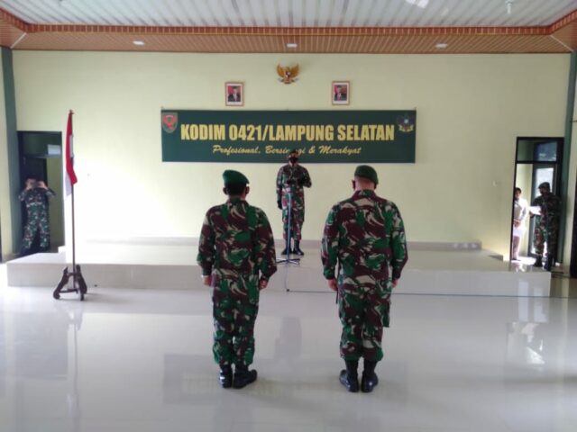 Yang pertama Puji syukur kehadirat Allah SWT sehingga kita bisa melaksanakan Korprapot Pelepasan pindah satuan terimakasih banyak saya ucapkan kepada sertu Arianto dan sertu Ibnu , Kalau kita sikapi kita ambil hikmahnya, keluarga di berikan nasehat di berikan pengertian atas pengabdiannya kepada TNI AD khususnya Kodim 0421/LS. Saya atas nama Komando dan selaku pribadi menyampaikan terima kasih dan penghargaan yang setinggi-tingginya atas segala pengabdian yang telah dilakukan selama berdinas di Kodim 0421/LS, “Ujarnya
