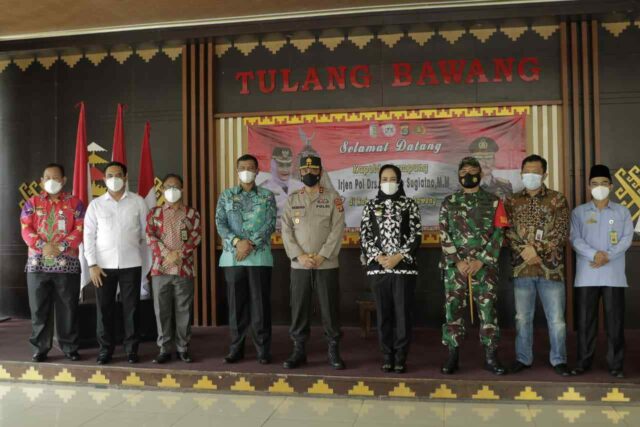 Onlinekoe.com, Tulang Bawang – Bupati Tulang Bawang Dr. Hj Winarti, SE., M.H Sambut  langsung Kunjungan Kerja Kapolda Provinsi Lampung Irjen Pol Drs. Hendro Sugiatno, M.M. di Pendopo Rumah Dinas Bupati, Jum’at 09/04/2021.