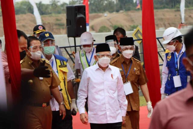 Onlinekoe.com – Wakil Presiden Republik Indonesia Ma’ruf Amin meninjau langsung kegiatan vaksinasi Covid-19 Provinsi Lampung yang digelar di gedung Balai Keratun, Senin 22 Maret 2021.