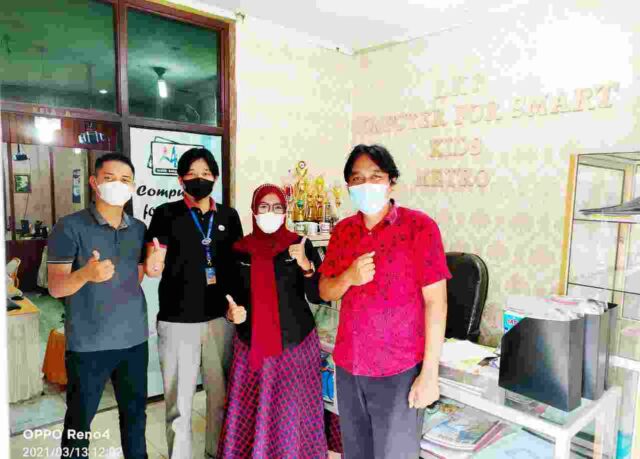 Hal ini terungkap dalam kunjungan Kepala Pusat Pengabdian dan Inovasi LP2M IIB Darmajaya Hendra Kurniawan, M.T.I. bersama Kepala UPT Bahasa Yan Aditya Pratama, M.Pd., M.M. pada Sabtu (13/03/2021). Keduanya diterima langsung Pengelola LKP Computer for Smart Kids, Tri Nurul Fajarotun, M.T.I.