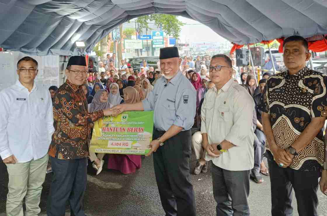 Onlinekoe.com| Payakumbuh – Gubernur Sumatra Barat Mahyeldi Ansharullah, menyerahan bantuan beras Cadangan Pangan Pemerintah (CPP) Provinsi Sumatra Barat kepada masyarakat dan pedagang yang terdampak bencana kebakaran di Kota Payakumbuh. Berlangsung di Halaman Kantor Pos Payakumbuh, Jumat (19/9/2025).