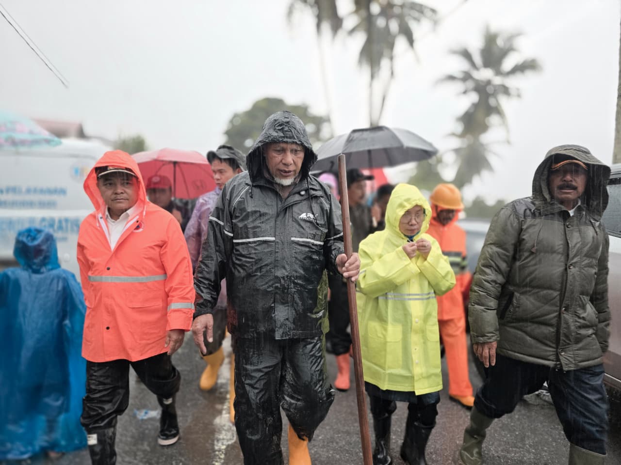 Ditengah guyuran hujan deras, gubernur bersama Bupati Agam, Benny Warlis dan sejumlah pihak terkait berkeliling untuk meninjau kondisi masyarakat dan dampak yang ditimbulkan oleh bencana.