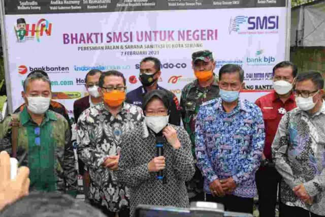 Demikian dikatakan Menteri Sosial Tri Rismaharini dalam acara peresmian jalan sepanjang 750 meter dan fasilitas sanitasi sebanyak 16 MCK di Kampung Jaha Kelurahan Pager Agung Kecamatan Walantaka Kota Serang Provinsi Banten, hari Minggu pagi (7/2). Pembangunan jalan dan MCK ini atas sumbangan anggota SMSI se-Indonesia.