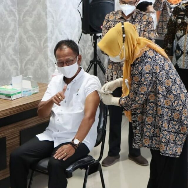 Pemberian vaksin tersebut dilakukan kepada 20 orang pejabat daerah, pihak akademisi, tokoh agama yang diawali dengan registrasi para peserta, screening, penyuntikan vaksin, observasi selama 30 menit dan kemudian penyerahan kartu imunisasi sebagai bukti telah dilakukan vaksinasi.