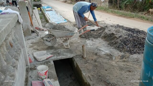 “Ketika di tanya mengenai adukan,kami mengerjakan sesuai perintah ketua ,satu sak semen 4 arco pasir dan 4arco batu,(4,4,1),” Jelas SM.