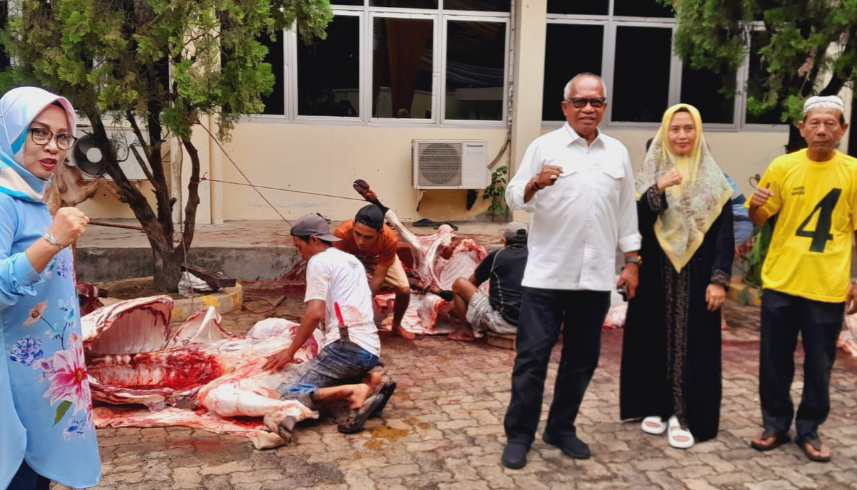 “Alhamdulillah tahun ini kita kembali menyembelih hewan qurban, baik sapi serta kambing,” kata Ismet Roni.