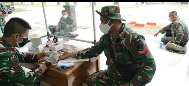 Pemeriksaan kesehatan setelah prajurit kembali ke asrama langkah ini dilakukan demi keamanan dan kelancaran bersama, mengingat situasi masih dalam kondisi pandemi covid 19.