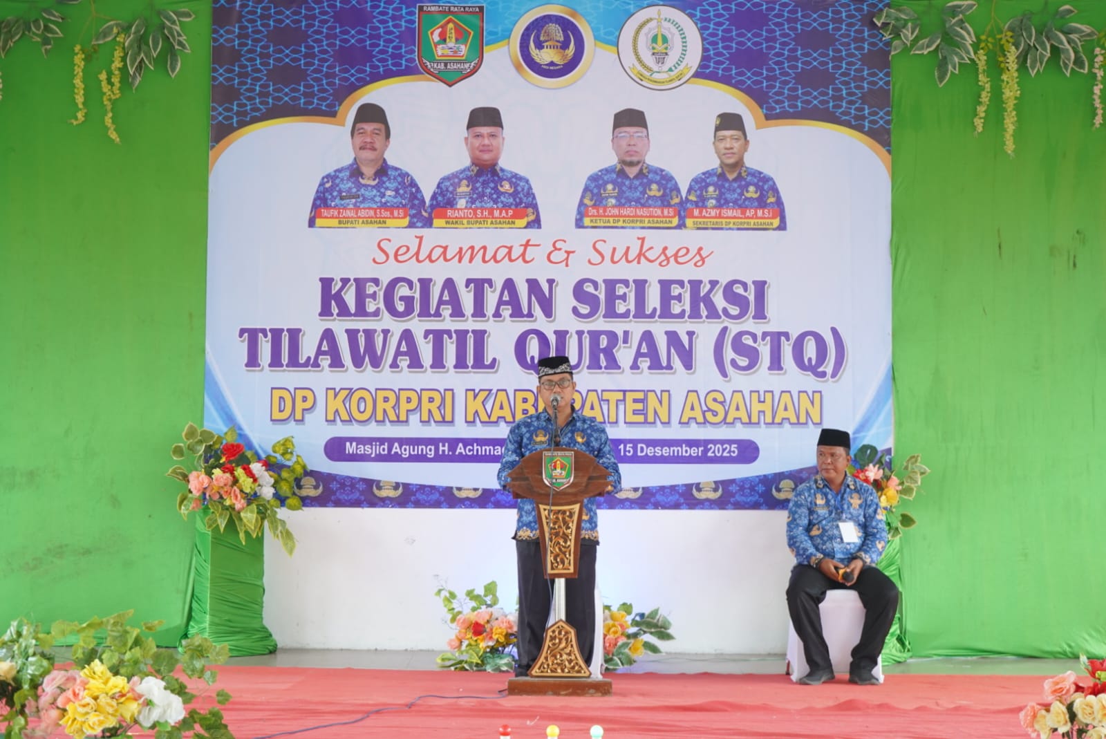 Kegiatan yang mengusung tema “Meningkatkan Iman, Ilmu, dan Akhlakul Karimah” ini merupakan bagian dari sinergi Korpri dengan Pemerintah Kabupaten Asahan dalam pembinaan Aparatur Sipil Negara (ASN) yang religius dan berkarakter, serta dihadiri Wakil Bupati Asahan Rianto, S.H., M.AP., selaku Pembina Korpri Kabupaten Asahan, Asisten Administrasi Umum Setdakab Asahan, Ketua DPK Korpri Kabupaten Asahan beserta pengurus, MUI Kabupaten Asahan, Dewan Hakim, para peserta STQ, serta tamu undangan lainnya.