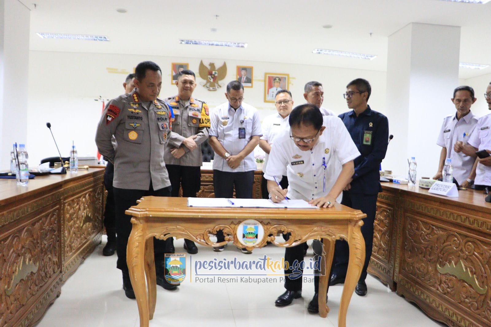 emerintah Kabupaten (Pemkab) Pesisir Barat (Pesibar) menggelar penandatanganan Nota Perjanjian Hibah Daerah (NPHD) dan berita acara serah terima hibah daerah kepada Satuan Brigade Mobil (Brimob) Polda Lampung, Pemprov Lampung, dan Pengadilan Agama Krui Kelas II, di ruang rapat Bupati, Lantai 4 Gedung A Komplek Perkantoran Pemkab Pesibar, Rabu (12/2/2025).