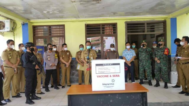 Kedatangan vaksin tersebut mendapat pengawalan ketat aparat kepolisian bersenjata lengkap serta langsung di terima oleh Bupati Agus Istiqlal di dampingi sekda, para asisten serta kepala dinas kesehatan di sekertariat kabupaten setempat.