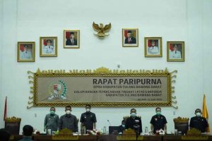 Onlinekoe.com, TUBABA — Sekertaris Daerah Kabupaten Tulang Bawang Barat Novriwan Jaya. SP Menghadiri Rapat Paripurna DPRD dalam rangka Pembicaraan Tingkat 1 (satu) atas 6 (enam) Raperda secara Virtual Zoom Metting di Ruang Rapat Bupati Pemkab setempat, Selasa 13/07