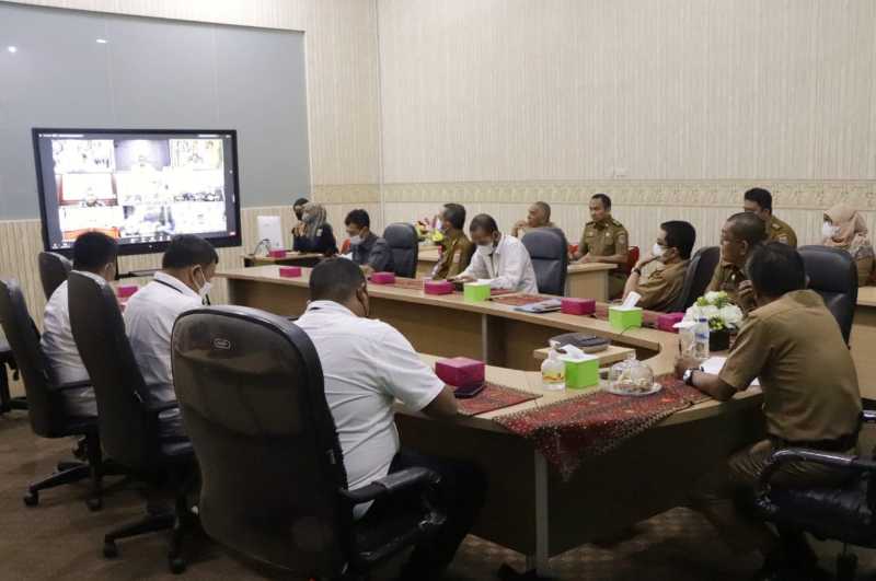Bandar Lampung — Asisten Perekonomian dan Pembangunan, Kusnardi, mengikuti Rapat Koordinasi Pengendalian Inflasi di Daerah, Melalui Virtual Meeting, bertempat di Ruang Command Center Lt.II Diskominfotik Provinsi Lampung, Senin (21/11/2022).