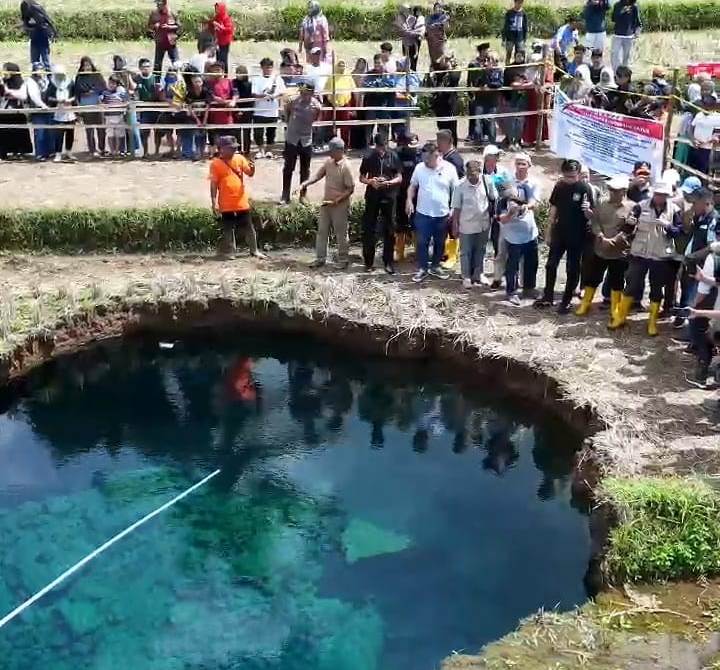 Sebelumnya, sinkhole tersebut diketahui muncul secara tiba-tiba pada Minggu (4/1/2025) siang di lahan persawahan milik warga bernama Adrolmios (61).