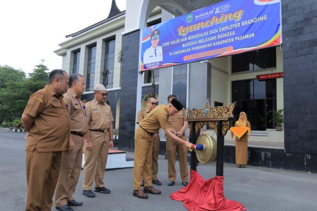 Acara launching ditandai dengan pemukulan Gong oleh Bupati Sabar AS saat Apel Organik Pemerihtah Daerah Kabupaten Pasaman yang dihadiri seluruh OPD, Camat-Camat dan Wali Nagari se Kabupaten Pasaman di halaman Kantor Bupati Pasaman.