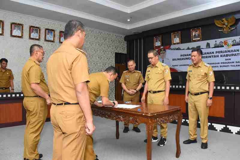 Tubaba – Pemerintah Kabupaten (Pemkab) Tulang Bawang Barat (Tubaba) menggelar Penandatanganan Perjanjian Kinerja Tahun 2025 dilanjutkan Rakor Khusus Pembahasan Program dan Aksi Nyata 100 Hari Kerja Pertama Bupati dan Wakil Bupati Tubaba. Di Ruang Rapat Bupati. Selasa (11/03/2025).