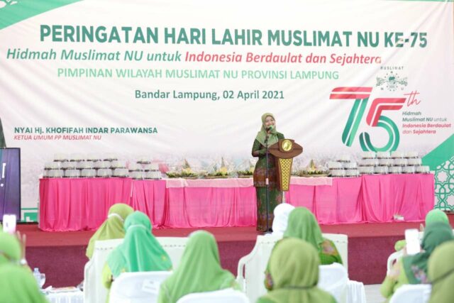 Hal itu disampaikan Wagub Nunik saat menghadiri Peringatan Hari Lahir Muslimat NU ke-75 di Gedung Graha Bakti Kwarda Gerakan Pramuka Lampung, Jumat (2/4/2021).