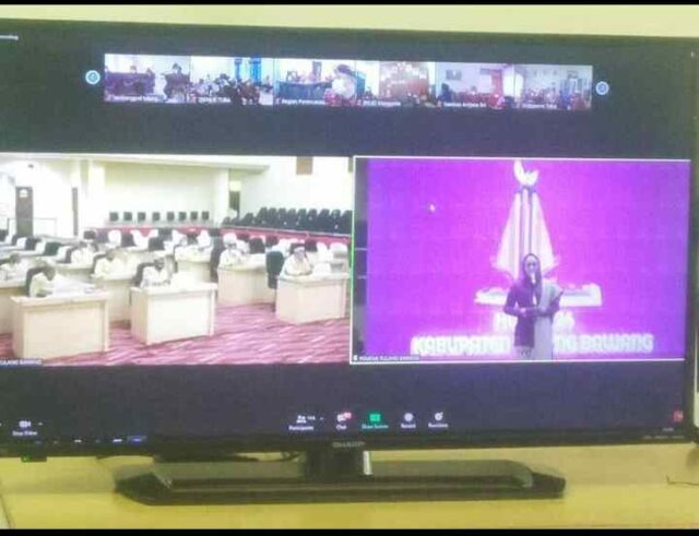 Dewan Perwakilan Rakyat Daerah (DPRD) Kabupaten Tulang Bawang menggelar Rapat Paripurna secara Virtual Zoom Meeting yang saksikan Oleh Seluruh Masyarakat Kabupaten Tulang Bawang, Kegiatan tersebut berlangsung di ruang rapat gedung DPRD Tulang Bawang. Rapat Paripurna ini dipimpin langsung oleh Ketua DPRD Tulangbawang Sopi’i berserta Wakil Ketua I Ali Hasan, Wakil Ketua II Mursidah Hi. Herwan Saleh, Marjoko serta Ketua Praksi lainnya