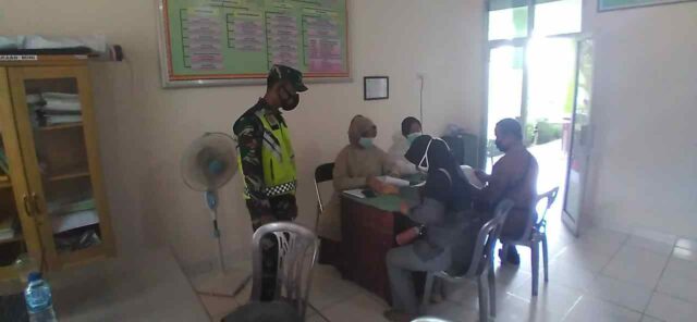 Personel Koramil 421-08/palas , pada pelaksanaan kegiatan tersebut juga ikut diterjunkan dalam mengawal serta mengamankan jalannya kegiatan vaksinasi , bersama aparat kepolisian serta instansi pemerintah wilayah kecamatan palas , pada pelaksanaan vaksinasi terhadap tenaga pelayanan publik dan masyarakat , di PRI desa Bumidaya kecamatan palas kabupaten lamsel , senin (12/04/2021).