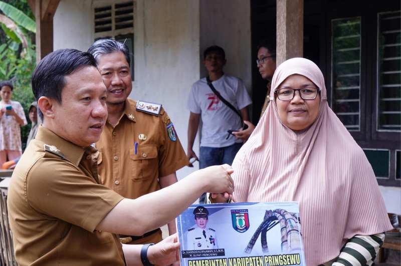Pj Bupati Pringsewu Marindo Kurniawan saat menyerahkan bantuan sosial berupa dana perbaikan rumah, kids ware dan sembako kepada sejumlah warga korban terdampak bencana pada Selasa (5/11/2024) berharap bantuan tersebut dapat membantu meringankan beban penderitaan korban terdampak bencana.