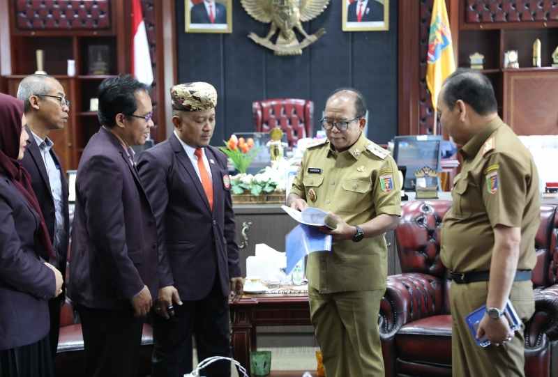 Pj. Gubernur Samsudin menyampaikan ucapan selamat datang dan terimakasih atas kunjungan PPNI Lampung di Kantor Gubernur Lampung.