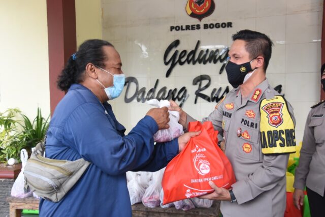 Onlinekoe.com, Bogor– Polres Bogor bagikan daging hewan kurban di hari Raya Idul Adha 1442 H. Selain daging kurban bagi masyarakat dan wartawan yang terdampak pemberlakuan PPKM Jawa- Bali