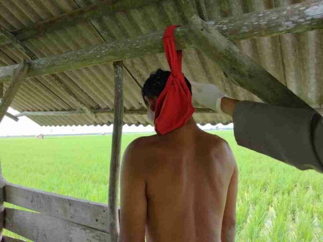 Peristiwa penemuan mayat laki-laki ini terjadi hari Rabu (24/02/2021), pukul 08.00 WIB, di sebuah gubuk di pinggir sawah, yang ada di Kampung Gedung Bandar Rahayu.